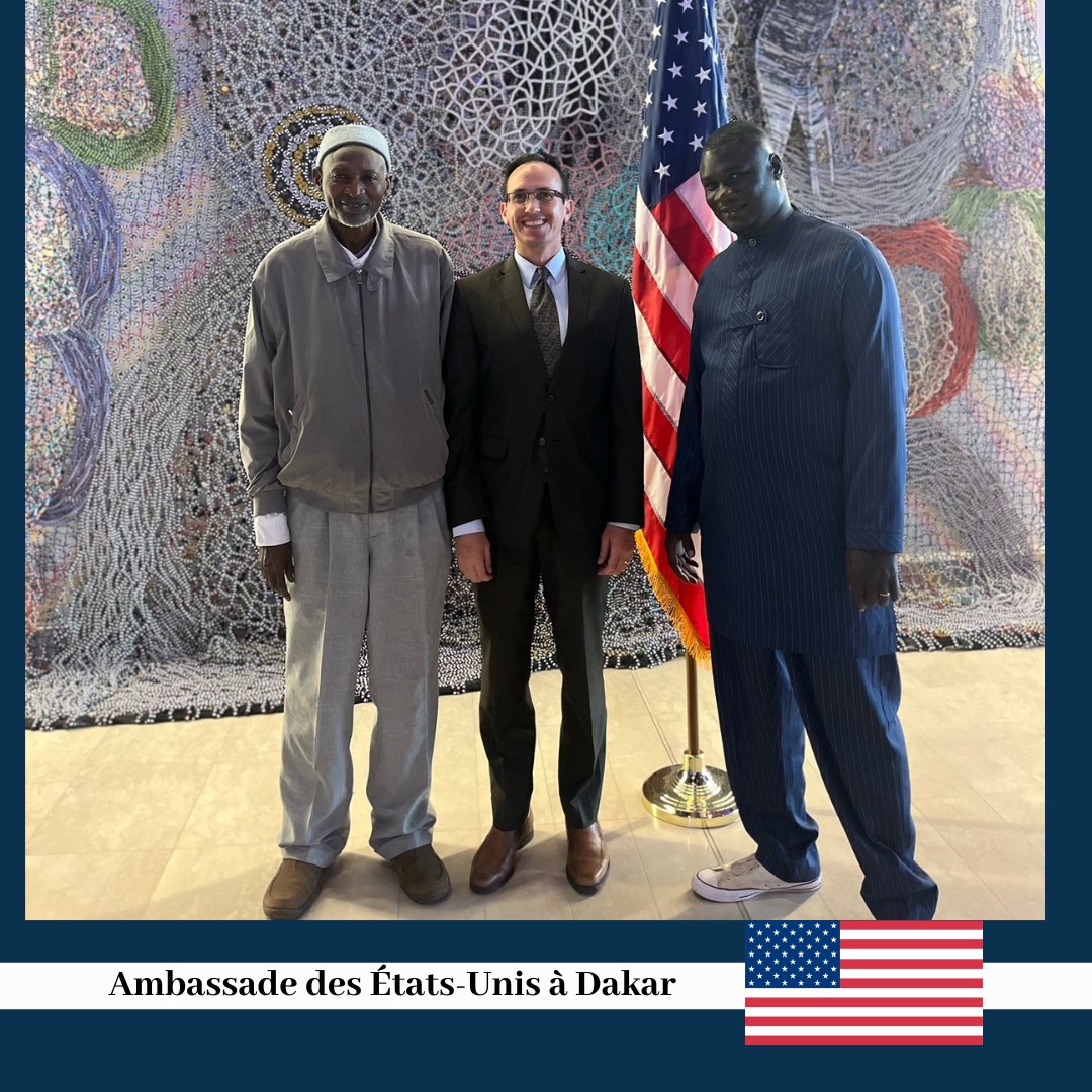 Le 12 avril, l’attaché politique de l’ambassade des États-Unis à Dakar, Michael Rosenthal, a accueilli une délégation conduite par Pape Sette Dramé, président de la Communauté Islamique Mouride d’Amérique (MICA). Lors de cette rencontre, ils ont discuté du rôle important que joue la diaspora sénégalaise dans le renforcement des liens étroits entre nos deux pays. Ils ont noté les contributions de communautés religieuses dynamiques dans nos deux pays, y compris les célébrations annuelles du Bamba Day qui ont lieu dans des villes à travers les États-Unis, honorant l’héritage de Cheikh Ahmadou Bamba, ses valeurs de paix, de dévotion, d’éducation et d’égalité.