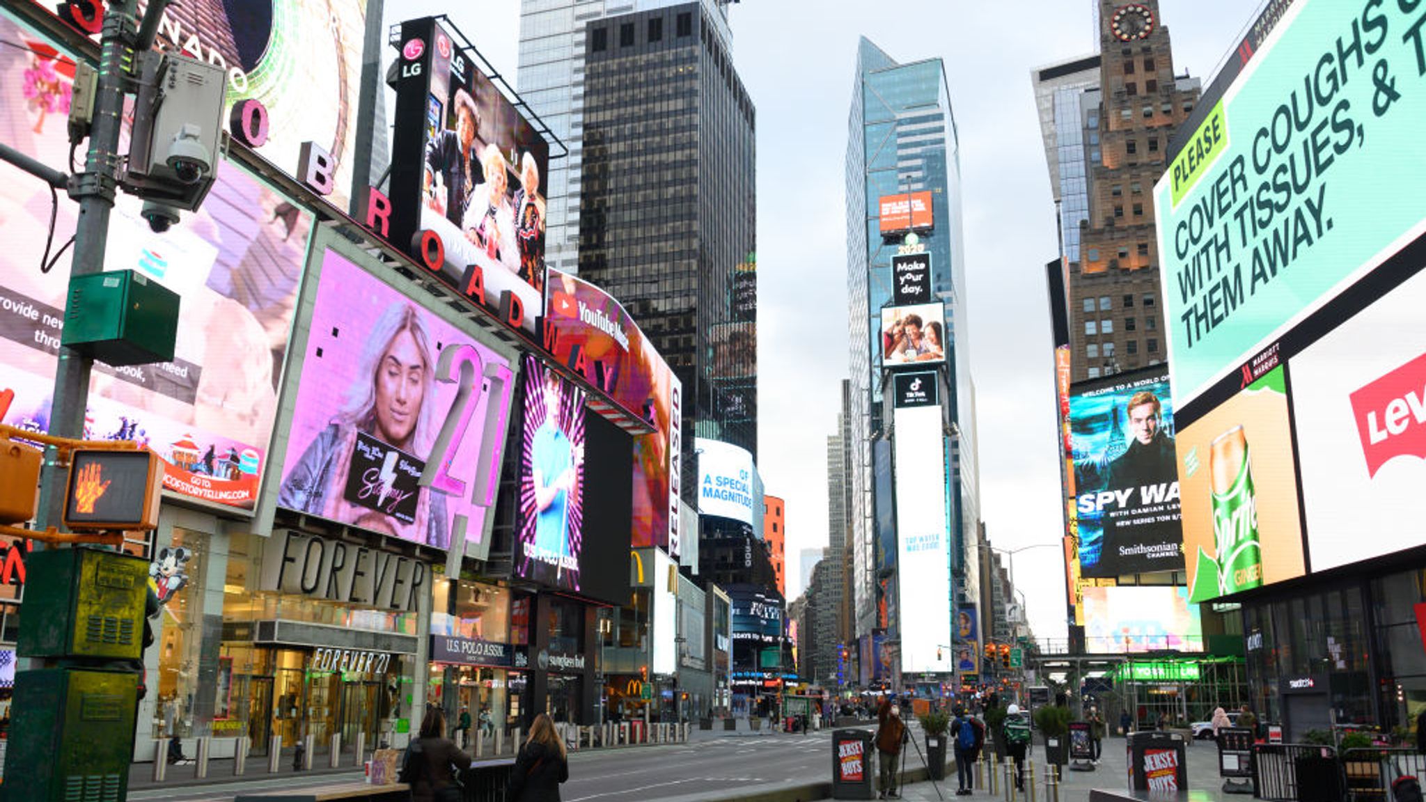 Les New-Yorkais, habitués aux embouteillages et aux foules, s’adaptaient tant bien que mal à cette nouvelle réalité faite de rues quasi-désertes, de chantiers de construction à l’arrêt, d’écoles fermées ou de rideaux de fer tirés. Bus et taxis jaunes continuaient à circuler, pour permettre notamment aux professionnels de santé et aux services d’urgence de travailler, mais roulaient souvent à vide.