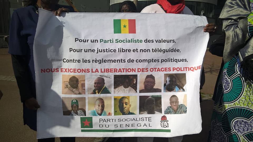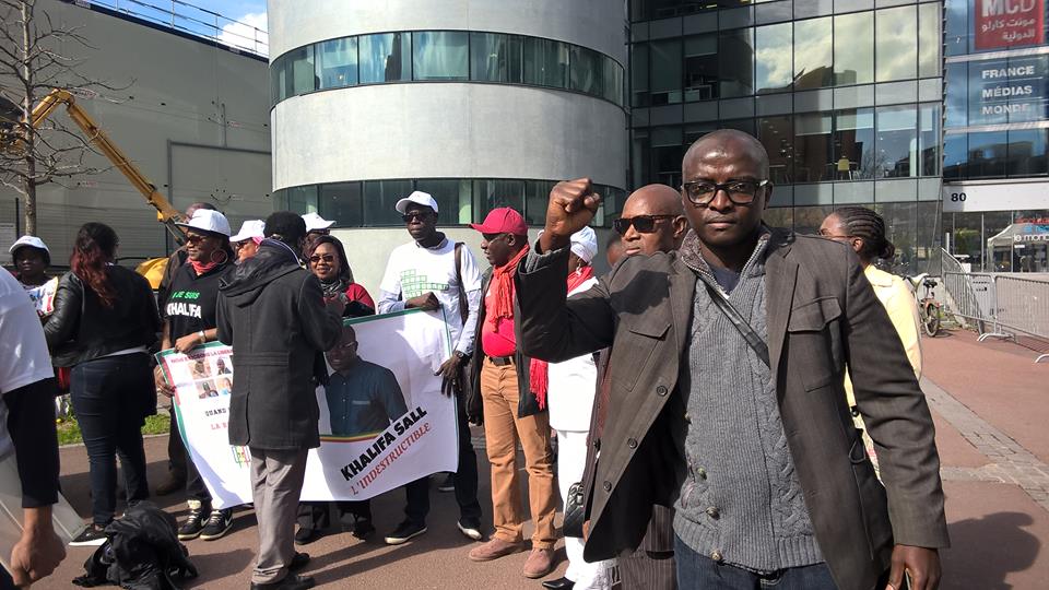 Des sénégalais de France manifestant devant le siège de la Radio télévision RFI – France 24 à Paris. Une manifestation de soutien á Khalifa Sall , à tous les prisonniers politiques et contre toutes les injustices subies au Sénégal, dit notre source.