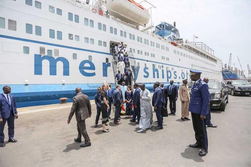 L’annonce officielle du Sénégal comme premier pays hôte du Global Mercy a été faite à bord du navire en présence d’une délégation ministérielle sénégalaise. Un événement spécial a été organisé pour le ministre de la Santé et de l’Action sociale, Abdoulaye Diouf Sarr, qui s’est déplacé à Rotterdam avec le Dr Serigne Gueye Diop, ministre-conseiller à la présidence, Momar Gueye, ambassadeur du Sénégal aux Pays-Bas, et le Dr Babacar Gueye, directeur de la lutte contre les maladies.
