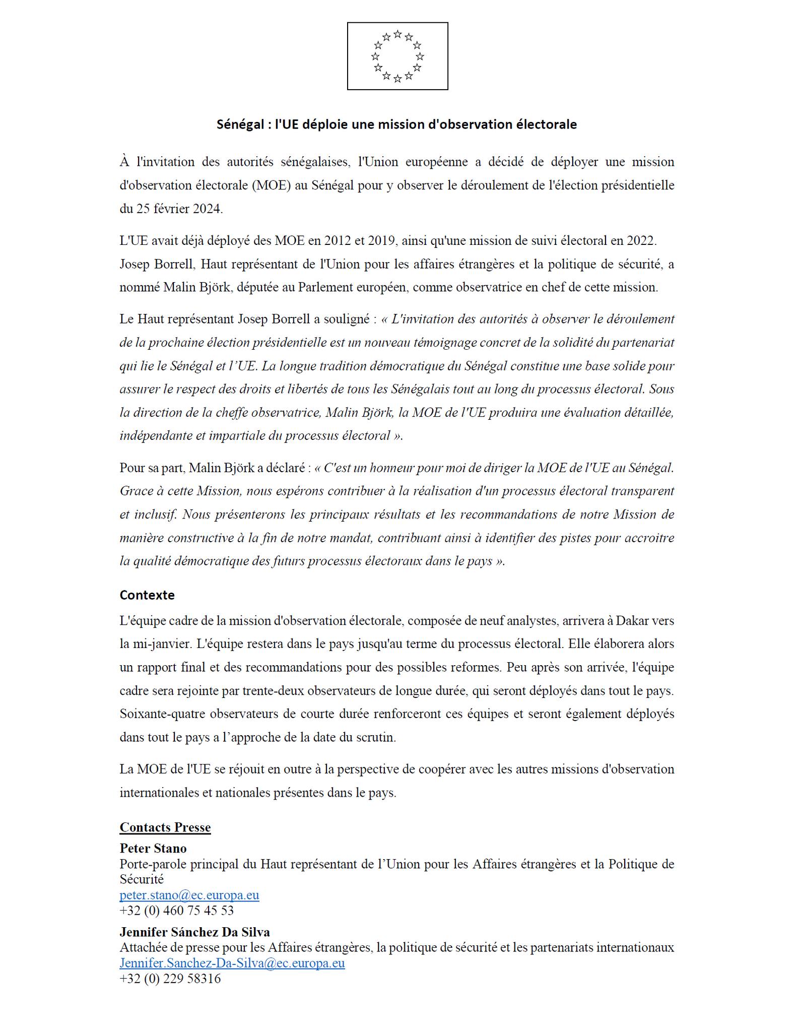 L’Union européenne déploie une mission d’observation électorale (MOE) au Sénégal