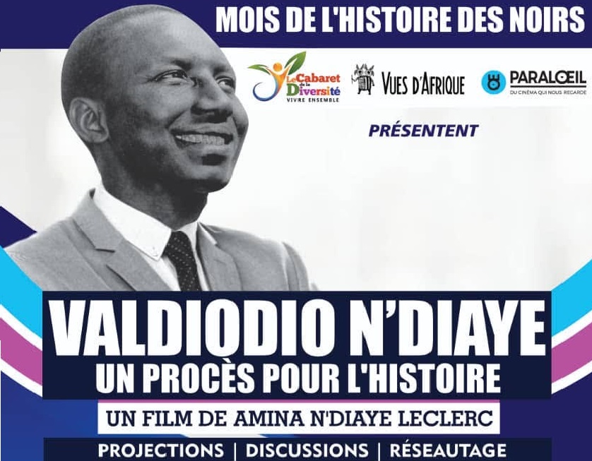 Dans le cadre du Mois de l’histoire des Noirs, le Cabaret de la diversité, Paraloeil et le Festival international Vues d’Afrique présentent – avec le soutien du Consulat de France à Québec – la tournée québécoise du film documentaire « Valdiodio N’diaye, un procès pour l’histoire », réalisé par Amina N’Diaye Leclerc; entre le 14 et le 18 février. Le film documentaire fera l’objet de projections-discussions dans 5 villes et quatre régions du Québec en présence de la réalisatrice.